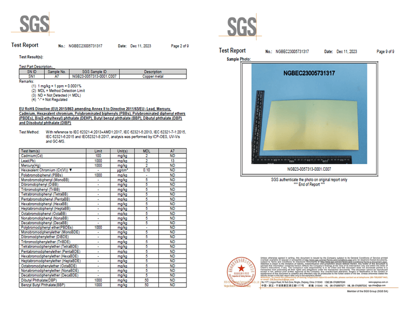 INT प्रमाणपत्रहरू-TEST-ROHS- BRASS